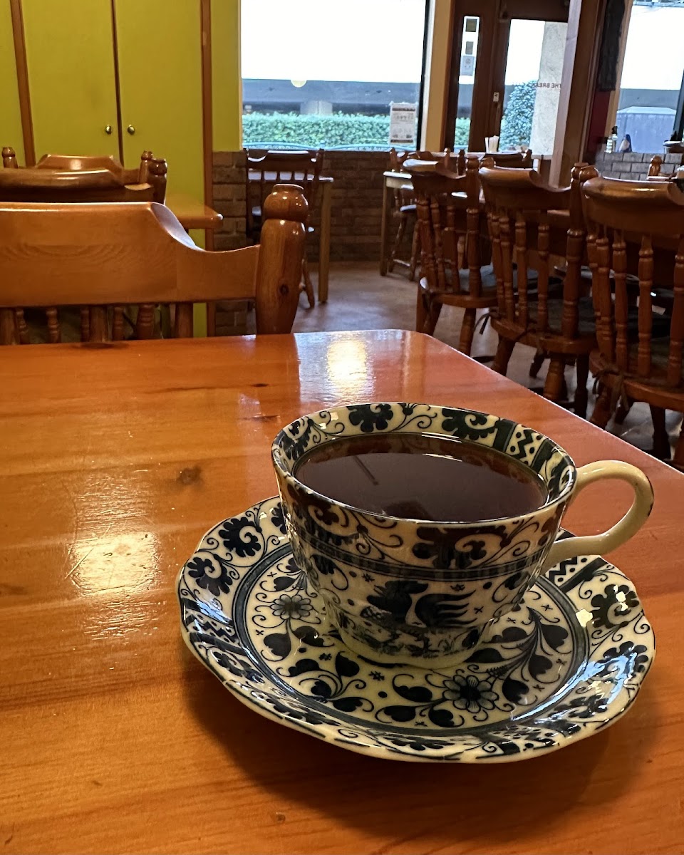 As you step inside, you are welcomed by the kind smiles of the owner couple, who have put their heart and soul into cultivating a cozy space that feels like home. The café exudes a unique charm, decorated with lovingly maintained furniture that tells a story of tradition and passion. It's evident in the polished tables and chairs that the owners truly care about their establishment, making it an inviting spot for both intimate gatherings and solo visits.